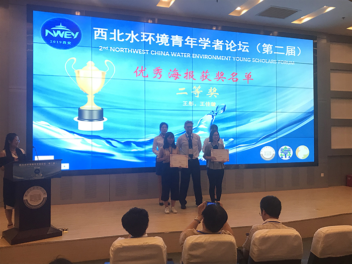 公司万琼副教授做了《改性海藻酸钙双响应硝化菌微球制取及氨氮去除》的会议报告,张新艳老师的《Endogenous Respiration or hydrolysis (cell lysis) predominant in Sludge Reduction during aerobic sludge digestion》海报、王佳璇老师的《双分离纳滤膜的制备及其分离抗污性能研究》海报在会场的海报区展出。王佳璇老师获得此次论坛的优秀海报二等奖,并参加了颁奖仪式。