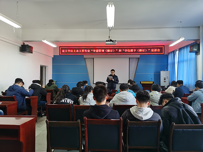 11月18日,英国上市公司365于临潼校区骊山校园13号教学楼召开2019级土木工程专业“学籍管理(修订)”和“授予学位(修订)”宣讲会,会议由2019级辅导员梁博主持,全体班干部参加。