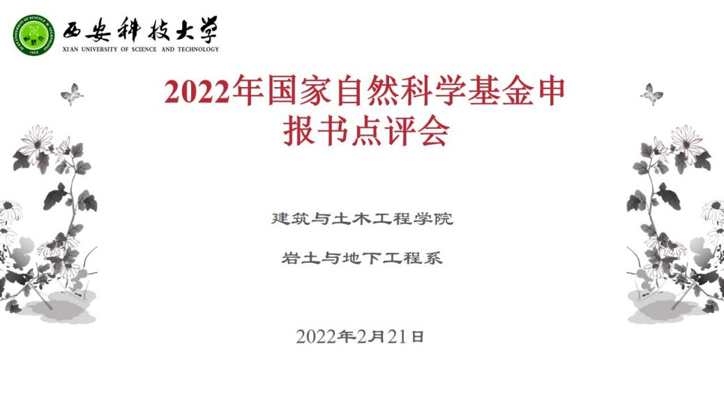 为了进一步推进2022年国家自然科学基金申报工作,提升申请书撰写质量,2022年2月21日上午,岩土与地下工程系线上举办了“2022年国家自然科学基金申报书点评会”。